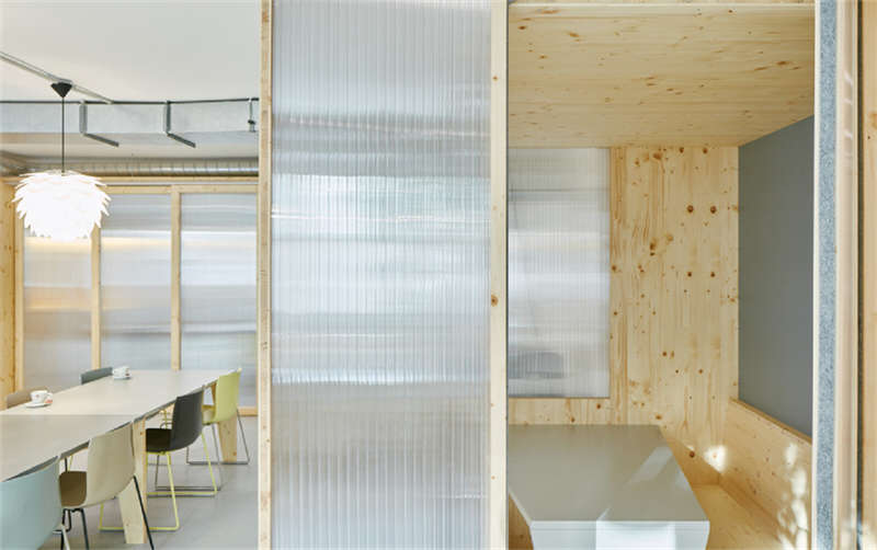 入口處是大型開放式接待/酒吧/公共區(qū)域,隨后是運(yùn)動休閑區(qū),設(shè)有大型健身、瑜伽和會議空間以及衣柜。在空間的后面,有一個(gè)更隱蔽的辦公區(qū),分為3個(gè)更大的房間和額外的會議室。