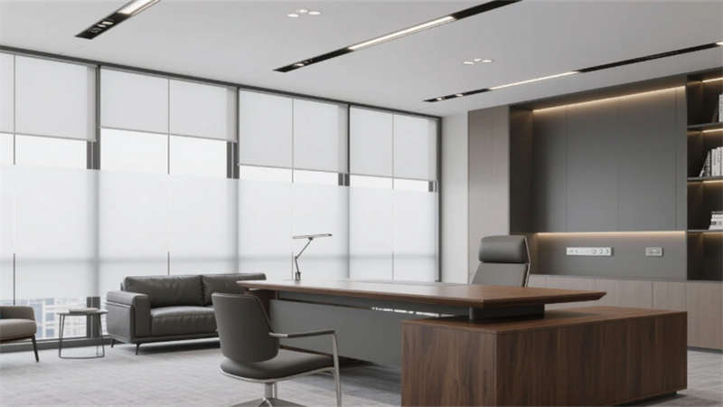 室內(nèi)空間延續(xù)外立面設計語言,企業(yè)大堂通過技術創(chuàng)新實現(xiàn)淺白大理石與木紋墻面的無縫拼接,懸浮式線性燈光系統(tǒng)可隨自然光線智能調(diào)節(jié)色溫。開放式辦公區(qū)配置智慧化模塊組合,可升降桌體與軌道射燈靈活適配多元場景,協(xié)作島集成無線充電與環(huán)境感知功能。高管辦公室采用智能霧化玻璃隔斷,實現(xiàn)隱私與通透的自由切換??萍紩h室搭載高清透明顯示系統(tǒng)與多聲道聲學設備,電動百葉簾與補光系統(tǒng)聯(lián)動打造智能會議環(huán)境。