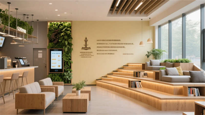 模擬法庭的深藍(lán)吸音墻面沉淀莊重氣質(zhì),可升降投影幕布與電子證據(jù)墻構(gòu)建數(shù)字化思辨場(chǎng)域;休閑區(qū)綠植幕墻與暖光閱讀角,則讓理性思考在自然光影中得以舒緩。從智能檔案庫(kù)的藍(lán)色光帶導(dǎo)航,到洽談室聲學(xué)波浪頂棚,科技元素始終隱于優(yōu)雅形態(tài)之下。