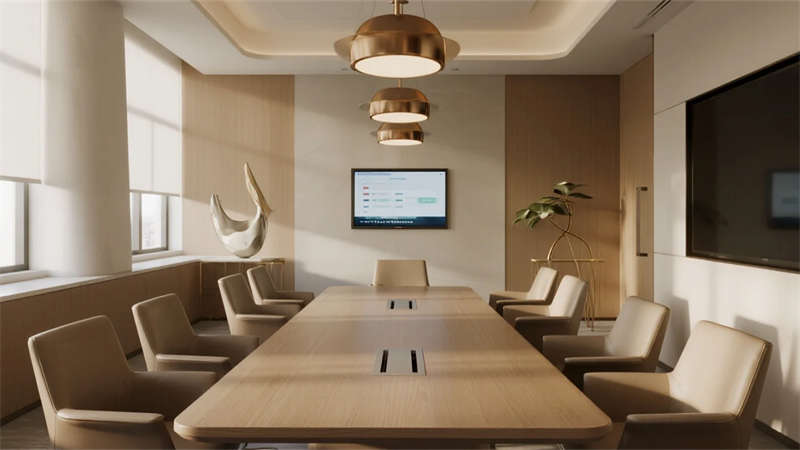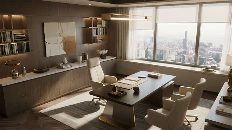 本設(shè)計(jì)以輕奢風(fēng)格為核心,打造一個(gè)優(yōu)雅而舒適的辦公環(huán)境。外觀采用現(xiàn)代建筑語(yǔ)言,玻璃幕墻與金屬細(xì)節(jié)相結(jié)合,彰顯高端氣質(zhì)。內(nèi)部空間注重細(xì)節(jié)與品質(zhì),接待區(qū)以大理石前臺(tái)和金屬裝飾營(yíng)造歡迎氛圍,開(kāi)放式辦公區(qū)布局靈活,配備簡(jiǎn)約家具和自然光元素,提升工作效率。會(huì)議室設(shè)計(jì)專業(yè)且智能,私人辦公室融合落地窗和 luxury 裝飾,提供靜謐工作空間。員工休息區(qū)與咖啡角注重舒適性,軟裝家具和溫馨 lighting 促進(jìn)放松與交流。走廊區(qū)域通過(guò)藝術(shù)墻面和 lighting 效果增強(qiáng)空間感,整體設(shè)計(jì)融合材質(zhì)對(duì)比與柔和色調(diào),營(yíng)造出精致而人性化的辦公體驗(yàn),強(qiáng)調(diào)美學(xué)與功能的平衡。