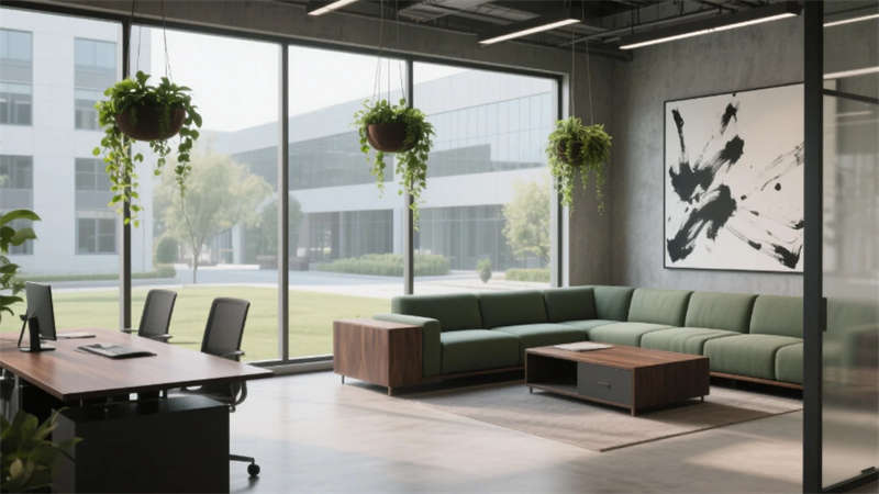 該辦公空間以"自然共生"為核心理念,將科技感與人文溫度融入兩千平米的開放場域。流動的淺木色調(diào)貫穿始終,啞光金屬與微水泥形成質(zhì)感對話,模塊化家具構(gòu)建靈活場景。綠植生態(tài)系統(tǒng)從空中吊籃蔓延至苔蘚墻面,模糊室內(nèi)外界限。