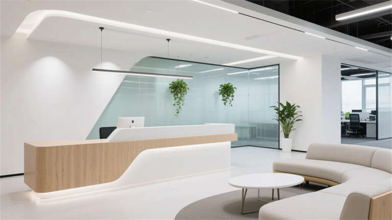這個辦公室設計以現(xiàn)代簡約風格為核心,通過流暢線條和中性色調(diào),打造出一個和諧而高效的工作環(huán)境。整體布局強調(diào)開放性與功能性,功能區(qū)之間無縫銜接,利用玻璃隔斷和自然光,營造通透感。接待區(qū)以溫馨氛圍迎接訪客,開放辦公區(qū)促進團隊協(xié)作,會議室提供寧靜討論空間。休息區(qū)與茶水間則融入綠植元素,為員工提供放松角落,提升日常舒適度。經(jīng)理辦公室和專注區(qū)平衡了私密需求,協(xié)作空間鼓勵創(chuàng)意交流。設計注重人性化細節(jié),如柔和燈光和懸浮家具,減少視覺雜亂,同時強化生態(tài)理念。整個空間不僅美觀實用,還體現(xiàn)了對員工福祉的關懷,營造出積極的工作氛圍。蚌埠元素貫穿始終,展現(xiàn)地方特色與現(xiàn)代美學的融合,讓辦公環(huán)境成為靈感源泉。