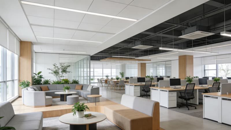 本案為蚌埠本土企業(yè)量身打造3000㎡全景式辦公室,以“地域文脈+現(xiàn)代辦公”為核心,將蚌埠淮河文化的溫婉底蘊(yùn)與當(dāng)代極簡美學(xué)相融。大樓外觀采用玻璃幕墻搭配淺灰金屬線條,簡約大氣中透著企業(yè)實(shí)力;前臺以溫潤石材與局部蚌殼紋理裝飾,暗藏地域符號。開放式辦公區(qū)規(guī)劃3個(gè)功能分區(qū),兼顧協(xié)作與私密,通透采光搭配靈活工位,適配多元辦公需求。經(jīng)理辦公室以沉穩(wěn)色系為主,嵌入定制收納系統(tǒng),平衡高效辦公與舒適體驗(yàn);總裁辦公室則融入輕奢元素,獨(dú)立茶歇區(qū)與全景落地窗結(jié)合,彰顯格局。會議室配備智能會議系統(tǒng),靈活切換研討、匯報(bào)等模式。整體設(shè)計(jì)既滿足3000㎡空間的功能分區(qū)合理性,又以細(xì)節(jié)傳遞蚌埠地域特質(zhì),為企業(yè)打造兼具實(shí)用性與品牌調(diào)性的辦公主場。