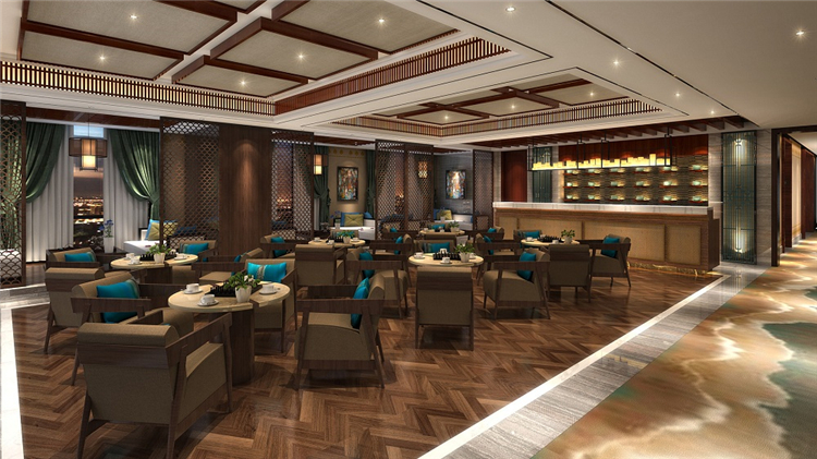 設(shè)計(jì)師同時(shí)考慮到地域民族文化和功能實(shí)用性,結(jié)合現(xiàn)代簡約與傳統(tǒng)藏式風(fēng)格,為往來的游客提供一個(gè)放松休憩的完美場(chǎng)所。設(shè)計(jì)師主要運(yùn)用藏藍(lán)、金黃、喇嘛紅等濃重色彩進(jìn)行搭配,靈感既來自于藏族傳統(tǒng)文化及宗教藝術(shù),也來自于雪域高原山高天藍(lán)水長花艷的自然景觀。借用柱網(wǎng)結(jié)構(gòu)、幾何紋路、吉祥花等藏式建筑形式和圖案進(jìn)行裝飾和點(diǎn)綴,但將繁復(fù)的式樣盡量精簡平面化,取其古樸、神奇、粗獷的神韻,表達(dá)一種平衡、對(duì)比、和諧統(tǒng)一的構(gòu)圖規(guī)律和審美思想。