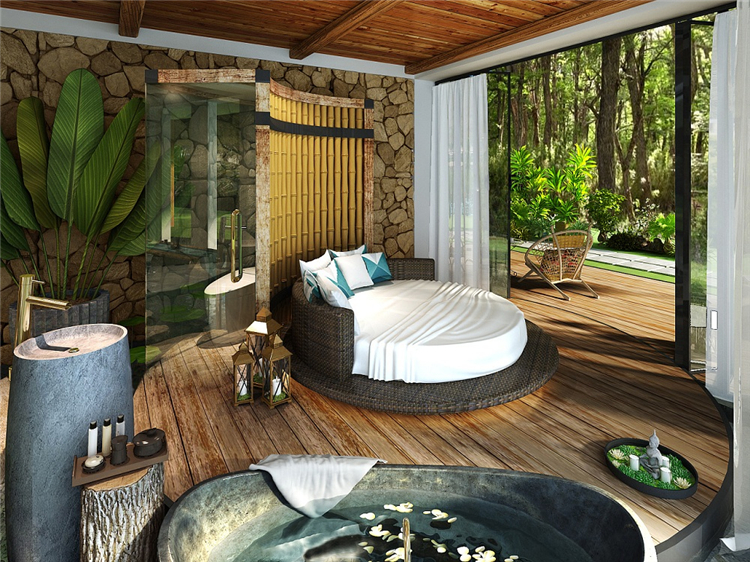 本案民宿度假酒店采用東南亞裝飾設計風格