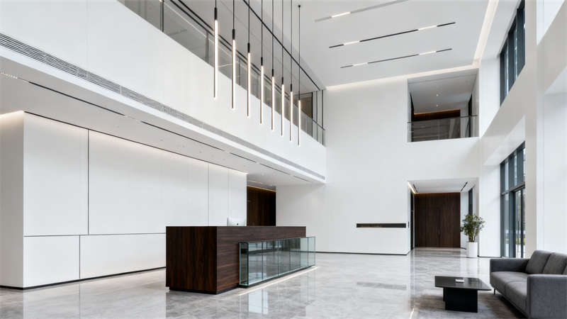 室內(nèi)空間延續(xù)外觀的簡約風(fēng)格,從大堂開始,以開闊的布局和柔和的光線營造舒適的接待氛圍,避免繁雜裝飾,讓訪客第一時(shí)間感受到空間的通透與秩序。辦公區(qū)域以人性化設(shè)計(jì)為重點(diǎn),合理規(guī)劃工位布局,確??臻g利用率的同時(shí),也為員工預(yù)留出舒適的活動(dòng)范圍,色彩搭配以中性色為基礎(chǔ),點(diǎn)綴少量亮色提升空間活力。?