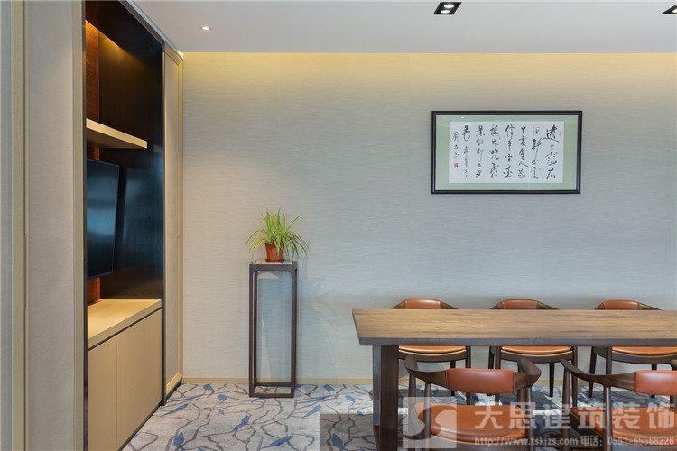“你站在橋上看風(fēng)景,看風(fēng)景的人在樓上看你。明月裝飾了你的窗子,你裝飾了別人的夢。”人與人、人與景之間的交織互動(dòng)在卞之琳的《斷章》里詩意呈現(xiàn),也同樣貼合設(shè)計(jì)師為同進(jìn)置業(yè)公司辦公室定下的設(shè)計(jì)思路。他的空間設(shè)計(jì)結(jié)合江景地利、都市人文,在實(shí)用功能、格調(diào)品位之外,借助綠植規(guī)劃等巧妙手法,進(jìn)一步突顯地產(chǎn)公司的職業(yè)形象與社會(huì)責(zé)任,不僅充分納景入室,更樹立起友好對外界面,成為一道嶄新的綠色都市風(fēng)景。