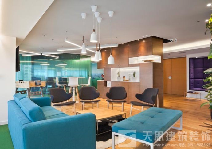 會(huì)議室的設(shè)計(jì):設(shè)計(jì)師在設(shè)計(jì)的時(shí)候,將其安置在靠近窗戶的空間區(qū)域中,在設(shè)計(jì)師看來會(huì)議是企業(yè)發(fā)展所不可替的,但是設(shè)計(jì)師希望可以改變會(huì)議室給人枯燥、無味的感覺,故此設(shè)計(jì)師將采光、室外景色通過設(shè)計(jì)的手法將其引入室內(nèi),讓會(huì)議變得有趣起來。