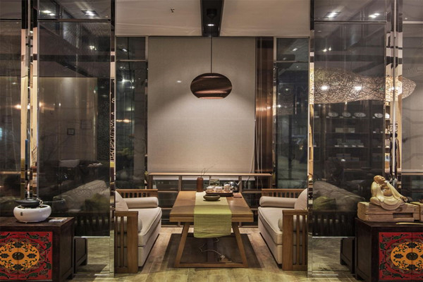 茶藝館的空間設(shè)計(jì)要與其總體設(shè)計(jì)風(fēng)格相匹配。在空間布置上可通過虛的手法遮擋視線,似隔非隔,隔中有透,實(shí)中有虛。例如利用布慢、漏墻、珠簾、屏風(fēng)、竹籬、木柵等緩沖通道與視線;又如,利用通道的回繞曲折相通,轉(zhuǎn)身回眸處別有一方天地。適當(dāng)?shù)姆指暨€可滿足部分客人不想被打擾的心理,這就是所謂的"園必隔"。