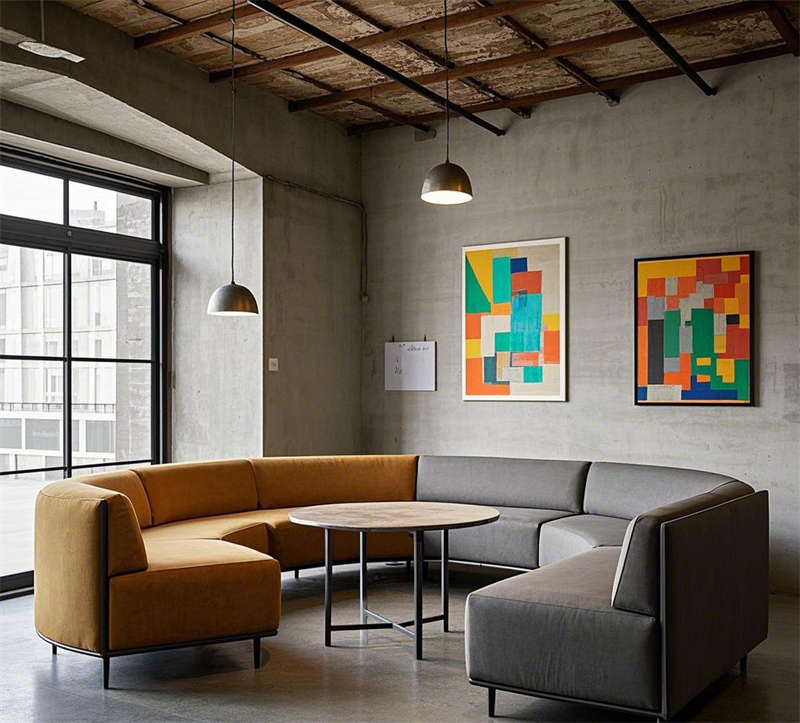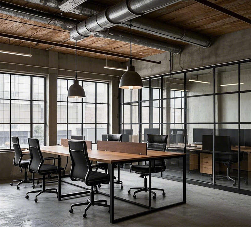 前臺接待區(qū)以深色木質(zhì)桌和皮質(zhì)沙發(fā)為主,搭配暖色調(diào)燈光和綠植點(diǎn)綴,既保留了工業(yè)風(fēng)的硬朗,又增添了溫馨感。開放式辦公區(qū)采用金屬支架桌和玻璃隔斷,既保證了空間的通透性,又提升了工作效率。會(huì)議室和經(jīng)理辦公室則通過深色木質(zhì)家具和落地窗設(shè)計(jì),凸顯出高端與穩(wěn)重。休息區(qū)和茶水間以舒適的皮質(zhì)沙發(fā)和金屬吧臺為亮點(diǎn),為員工提供了放松和交流的空間。創(chuàng)意討論區(qū)則通過不規(guī)則家具和白板墻激發(fā)靈感,而電話間則以玻璃隔斷和隔音設(shè)計(jì)保障了隱私需求。整體設(shè)計(jì)在保留工業(yè)風(fēng)原始質(zhì)感的同時(shí),注重功能性與舒適性的平衡,打造了一個(gè)既實(shí)用又充滿個(gè)性的辦公環(huán)境。