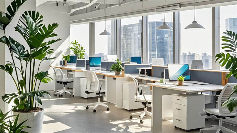 本項(xiàng)目為8000平現(xiàn)代科技風(fēng)辦公樓,以‘簡約高效·生態(tài)智能’為核心設(shè)計(jì)理念。整體采用淺灰、白與原木色系,通過大理石、玻璃和金屬材質(zhì)碰撞,營造專業(yè)且通透的辦公環(huán)境。空間規(guī)劃注重功能分區(qū):智能會(huì)議室配備遠(yuǎn)程協(xié)作系統(tǒng),開放式辦公區(qū)采用模塊化工位,走廊垂直綠化墻搭配空氣凈化系統(tǒng)。特別設(shè)計(jì)階梯式休息區(qū)與生態(tài)茶水間,利用弧形家具和隱藏式照明緩解工作壓力。燈光系統(tǒng)采用色溫可調(diào)LED,配合落地窗采光優(yōu)化,實(shí)現(xiàn)能耗智能控制。所有區(qū)域均集成物聯(lián)網(wǎng)終端,通過統(tǒng)一中控系統(tǒng)實(shí)現(xiàn)空間預(yù)約、溫濕調(diào)控等功能,打造智慧化現(xiàn)代辦公空間。
