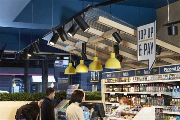 明黃色的吊燈、深藍(lán)色的瓷磚墻面、黑白格子相間的地磚搭配原木質(zhì)感的家具與貨架,這些元素組合在一起想要傳遞的都是同一個(gè)聲音,那就是"溫馨"與"新鮮",用Household 的話說,就是"這里所有販?zhǔn)鄣男迈r食品都已經(jīng)做好了充分準(zhǔn)備等你來享用".