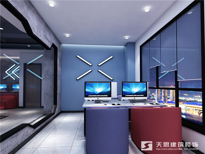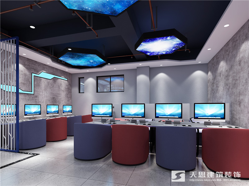 根據(jù)業(yè)主的要求,網(wǎng)咖設(shè)計(jì)的整體顏色以淺色為主,中間穿插對(duì)比強(qiáng)烈的撞色系來展現(xiàn)效果。