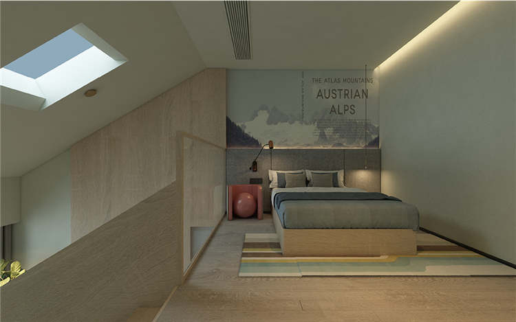 酒店房間基本都使用了抽象風(fēng)格的主題壁紙,通過獨(dú)特的視角帶給人們當(dāng)?shù)貏e樣的風(fēng)土人情。墻面以肉色的藝術(shù)涂料為主,與原木色的傾調(diào)完美融合,除此之外,室內(nèi)還有不少手作的小裝置,都是能不經(jīng)意間發(fā)現(xiàn)的小趣味。