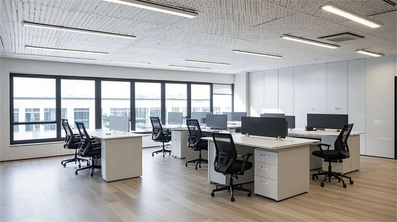功能布局強調(diào)流暢性:開放式辦公區(qū)借全景落地窗引入室外綠意,提升工作舒適度;智能車間通過規(guī)整的管線排布與環(huán)氧地坪,傳遞高效與秩序;員工休閑區(qū)與生態(tài)中庭形成呼吸節(jié)點,綠植與藝術(shù)裝置柔化工業(yè)環(huán)境的剛性。設(shè)計注重光線的戲劇性表達(dá),線性燈光與天窗協(xié)作,在走廊、會議室等區(qū)域投落細(xì)膩光斑,強化空間縱深感。
