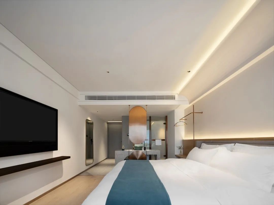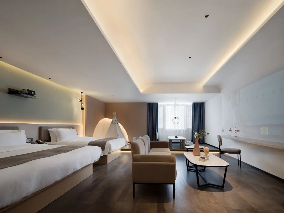 在線條曲度與建筑結(jié)構(gòu)的銜接中交融出感性層面的驚喜,令入住者“循著光”下榻酒店,在體驗與感受中為空間注入當下的即時形態(tài),由此,人在空間里是造訪者亦是著境者,是觀賞者,亦是參與者。情與境中,無盡遐思。