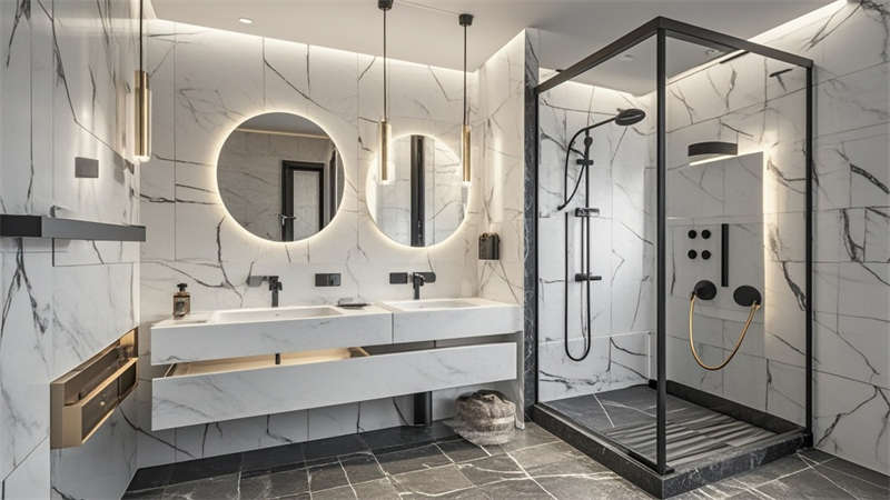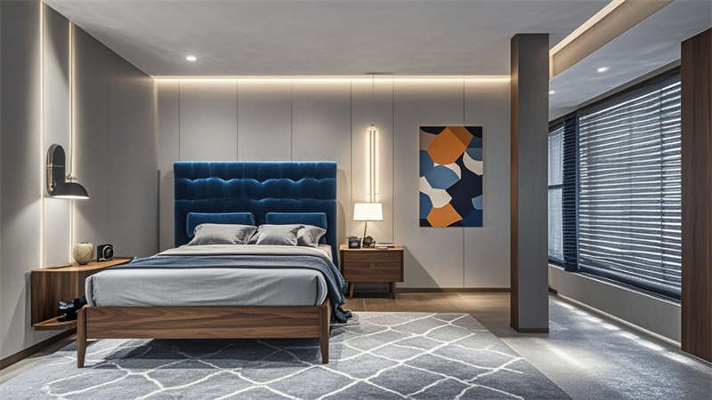 本2000平現(xiàn)代簡約風格酒店設計以'城市綠洲'為核心理念,通過流線型空間布局構(gòu)建高效動線。大堂采用懸浮式水晶燈與淺灰大理石地面形成視覺焦點,金屬與木質(zhì)的冷暖對比提升空間質(zhì)感??头繀^(qū)運用深藍與淺灰的撞色搭配,配合智能照明系統(tǒng)實現(xiàn)多場景模式切換。公共區(qū)域大量運用無框玻璃隔斷,保持空間通透性的同時實現(xiàn)功能分區(qū)。色彩體系以米白為基底,點綴深胡桃木與香檳金,局部運用幾何紋樣增強設計感。材料選擇注重環(huán)保與耐用性,石材、金屬與吸音材質(zhì)的組合兼顧美觀與實用。燈光設計采用多層次照明系統(tǒng),筒燈、燈帶與裝飾照明相結(jié)合,營造舒適光環(huán)境。各功能區(qū)域通過統(tǒng)一的材質(zhì)語言和色彩邏輯保持整體協(xié)調(diào),同時根據(jù)不同使用需求進行個性化設計,如會議室配備移動隔斷實現(xiàn)靈活分隔,健身中心采用防滑橡膠地板等專業(yè)處理