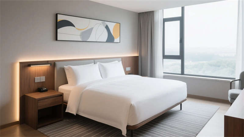 藝術(shù)品陳列成為空間的精神錨點。大堂抽象金屬裝置隱喻合肥科技創(chuàng)新基因,客房手作陶器呼應(yīng)本地文化脈絡(luò),電梯廳的石材拼畫以當(dāng)代語言解構(gòu)傳統(tǒng)山水意境。這些藝術(shù)介入并非孤立裝飾,而是與建筑結(jié)構(gòu)、功能流線深度交融。