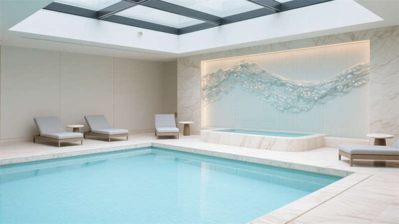 在公共區(qū)域,大堂以開(kāi)闊通透的布局呈現(xiàn),大面積的落地玻璃引入充足自然光線,讓空間更顯明亮通透。接待區(qū)選用柔軟的布藝沙發(fā)與金屬質(zhì)感的裝飾擺件相搭配,既傳遞出溫馨的氛圍,又不失精致格調(diào)。走廊設(shè)計(jì)則注重引導(dǎo)性,墻面采用肌理感材質(zhì),搭配嵌入式燈光,營(yíng)造出靜謐而優(yōu)雅的行走體驗(yàn)。