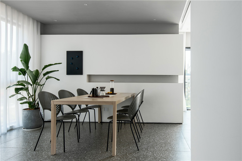 特色墻面 耐臟也很神秘,當(dāng)然不能是全部黑色。雖然黑色磕碰掉以后也會很難打理修補(bǔ),但是如果某一面墻體用上黑色的油漆,會對空間感有拉伸的效果,這套公寓黑色墻面也與地面非常搭配。