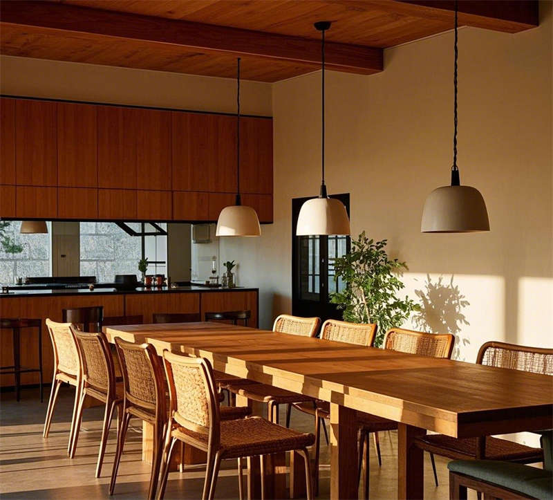 這套1000平民宿設(shè)計(jì)以自然簡(jiǎn)約風(fēng)格為核心,營(yíng)造出溫暖舒適、貼近自然的居住體驗(yàn)。整體空間以原木色調(diào)為主,搭配米白色、淺灰等柔和色彩,輔以綠植點(diǎn)綴,呈現(xiàn)出清新自然的氛圍。大堂以原木色前臺(tái)和藤編吊燈為亮點(diǎn),搭配落地窗引入充足光線,營(yíng)造出溫馨的迎賓空間。客廳采用開(kāi)放式布局,原木地板與編織地毯相得益彰,搭配圓形茶幾和落地?zé)?,打造出輕松愜意的休閑區(qū)域。餐廳延續(xù)自然風(fēng)格,長(zhǎng)桌與藤編餐椅的組合簡(jiǎn)潔大方,開(kāi)放式廚房與吧臺(tái)的設(shè)計(jì)增強(qiáng)了空間的互動(dòng)性。臥室分為兩種風(fēng)格,一種以藤編床頭和棉麻床品為主,營(yíng)造出舒適的睡眠環(huán)境;另一種采用日式榻榻米設(shè)計(jì),搭配推拉門(mén)和竹林景觀,傳遞出寧?kù)o禪意的氛圍。浴室同樣注重自然元素的運(yùn)用,圓形浴缸與綠植的結(jié)合讓人仿佛置身于自然之中,而日式風(fēng)格的浴室則通過(guò)竹制裝飾和庭院景觀,進(jìn)一步強(qiáng)化了寧?kù)o放松的體驗(yàn)。戶外庭院以石板小路和木質(zhì)平臺(tái)為主,搭配休閑桌椅和綠植環(huán)繞,為客人提供了一個(gè)親近自然的戶外休閑空間。整體設(shè)計(jì)注重材質(zhì)與光影的運(yùn)用,將自然元素與現(xiàn)代簡(jiǎn)約風(fēng)格完美融合,打造出一個(gè)舒適、放松的民宿空間。