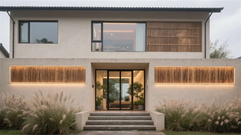本案以“現(xiàn)代自然主義”為核心理念,將合肥山水肌理與當(dāng)代設(shè)計(jì)語言交融,打造一座會(huì)呼吸的城市棲居地。建筑外立面以淺米色微水泥為基底,橫向原木格柵與嵌入式線性光帶勾勒出簡約輪廓,入口矮蒲葦隨風(fēng)輕搖,模糊室內(nèi)外界限。