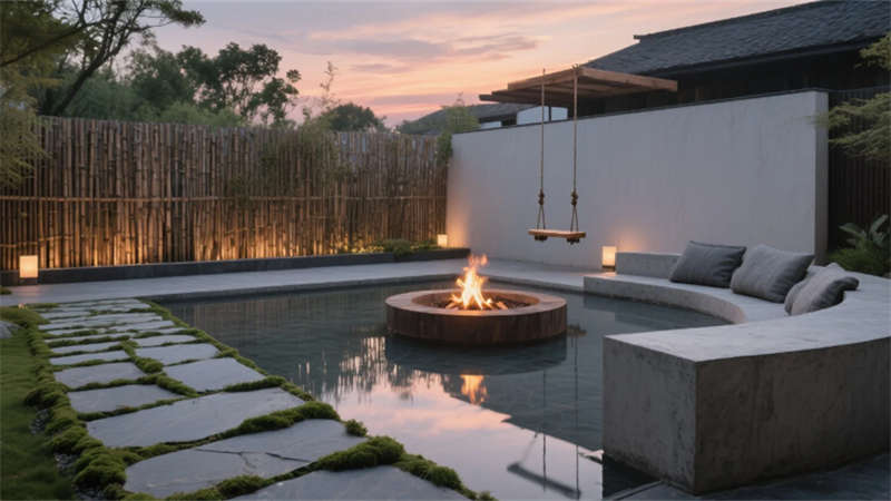 從庭院下沉式火塘的竹影搖曳,到接待臺(tái)金屬浮雕的抽象城市地圖,設(shè)計(jì)以克制的自然材質(zhì)、低飽和色系與智能化細(xì)節(jié),重構(gòu)現(xiàn)代人對(duì)“在地旅居”的想象——讓合肥不止于驛站,更成為一場沉浸式自然人文體驗(yàn)。