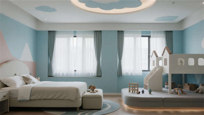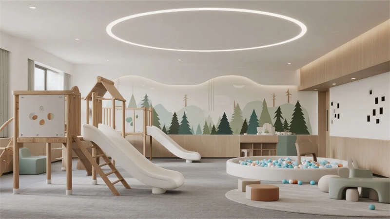 公共區(qū)域強調(diào)功能與美學(xué)的平衡:開放式游樂區(qū)釋放孩子天性,閱讀角的樹洞書架激發(fā)想象力,手工坊的彩虹收納系統(tǒng)培養(yǎng)創(chuàng)造力。戶外庭院融入沙坑與綠植,讓自然成為游戲場;夜晚的星空影音室則轉(zhuǎn)為家庭溫馨劇場。整體設(shè)計通過流動的空間布局,讓家長與孩子在簡約美學(xué)中共享親密時光,重新定義合肥親子度假的體驗方式。