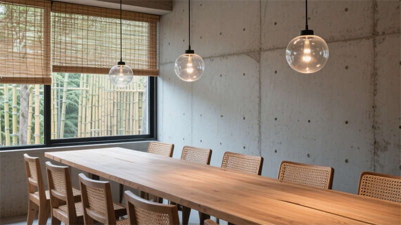 本設(shè)計(jì)以自然與現(xiàn)代的融合為核心,延續(xù)了原木、玻璃與清水混凝土的材質(zhì)語言,將合肥地域的溫潤氣質(zhì)與侘寂美學(xué)相呼應(yīng),打造出兼具舒適感與藝術(shù)感的居住場景。公共區(qū)域中,淺橡木色的柜體與天花線條連貫延伸,搭配通透的玻璃隔斷,讓光線自由穿梭,模糊室內(nèi)外的邊界;清水混凝土墻面保留了原始肌理,與苔蘚綠的軟裝陳設(shè)形成柔和對比,傳遞出質(zhì)樸而寧靜的氛圍。?