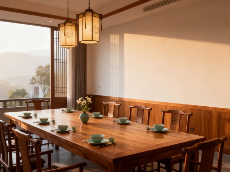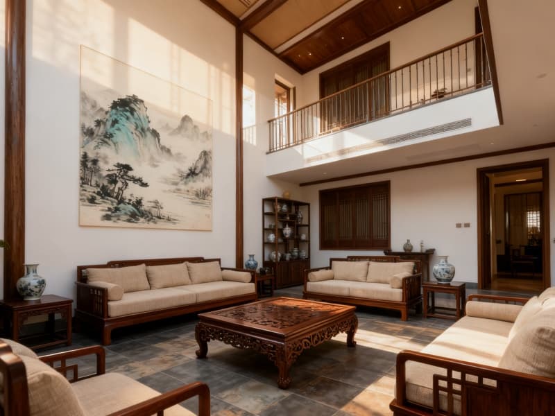 本設計以中式新古典風格為核心,為合肥民宿勾勒出兼具古韻與雅致的居住空間。外觀設計融入傳統(tǒng)建筑的對稱美學,青瓦與木構(gòu)相映,清晨柔光灑落時,墻面與門窗的線條更顯溫潤,搭配門前錯落的綠植,悄然營造出清幽靜謐的氛圍,既保留中式韻味,又不失現(xiàn)代居住的舒適感。?