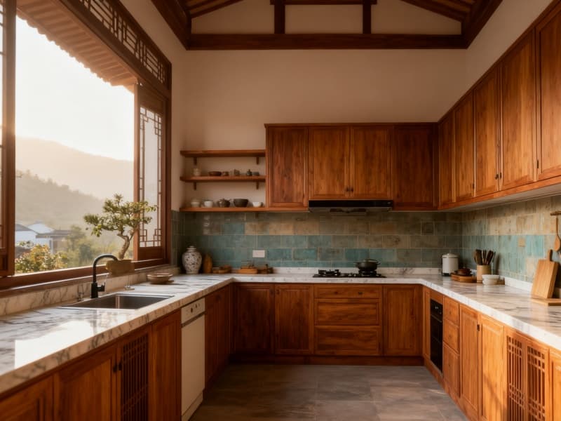 衛(wèi)浴與廚房區(qū)域同樣延續(xù)風格,原木元素與簡潔潔具、廚具搭配,既保證實用功能,又讓中式新古典的寧靜感貫穿始終。整體設計摒棄繁雜裝飾,以清晨柔光為引,用原木紋理傳遞自然溫度,讓合肥民宿成為可暫避喧囂、感受中式雅致的寧靜居所。