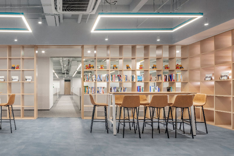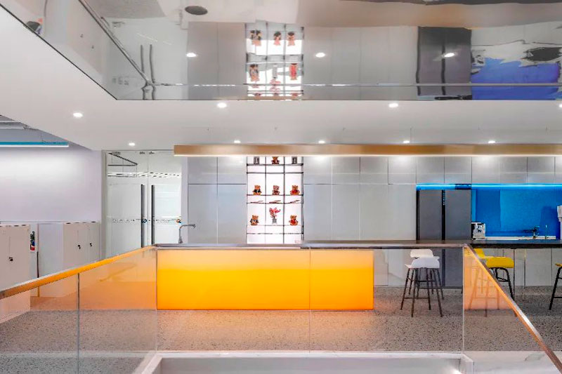 沉浸式體驗(yàn)人與空間交互,茶水區(qū)通過鏡面天花反射,光影在立體空間中流動(dòng),超動(dòng)感空間氛圍就此而生,板塊的不斷更新為它帶來永不停歇的活力,這里是“巨人”的世界。