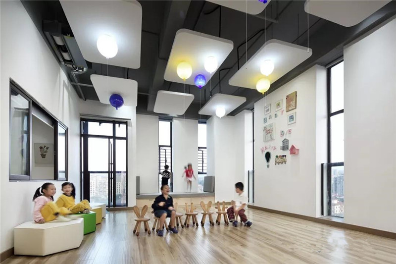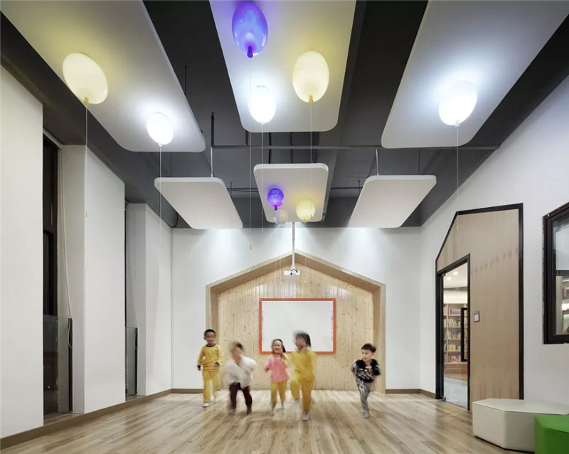 多功能室與互動(dòng)教室不做具象的使用功能,留空間給孩子挖掘,以保持孩子的活躍度。發(fā)揮實(shí)體建筑落地窗的優(yōu)越性,將通風(fēng)、采光做到極致。