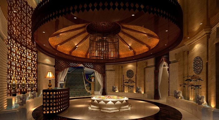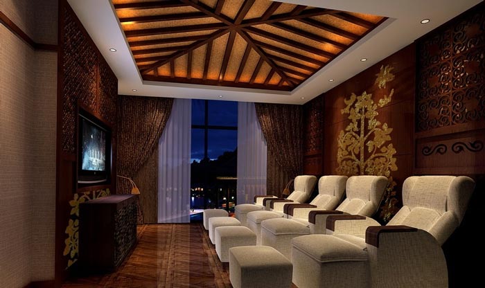 在空間及功能上,立體大氣且具有東南亞風(fēng)情的接待大廳與風(fēng)格典雅奢華的異域包廂相結(jié)合,再巧妙地融入東方獨(dú)到著佛教元素,從文化和生活層面?zhèn)鬟_(dá)出現(xiàn)代人對休閑養(yǎng)生的高品質(zhì)追求。