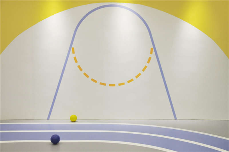 陽光洗禮這片綠茵,賦予茁壯的祝福。空間抹去一堵墻體,消弭了教室的結構,其功能得到了重塑,給組合課堂提供支持。地面的跑道被星球的神奇能量映射在空中,下一秒的跳躍,也許能乘駕著時間,奔跑向星辰和大海。每一個教室的教具都被用心安放,留給孩子們足夠的空間揮灑自由。柱間尺度的限制下我們轉換了家長的看課方式,親子間共同的成長是我們對場所的思考。
