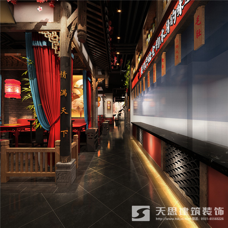 本次為合肥香天下火鍋店分店徽淮南店裝修設(shè)計(jì)效果,在本次火鍋店設(shè)計(jì)中,設(shè)計(jì)師采用新中式做為空間設(shè)計(jì)風(fēng)格,設(shè)計(jì)師希望讓客戶在這里感受到不一樣的氛圍。