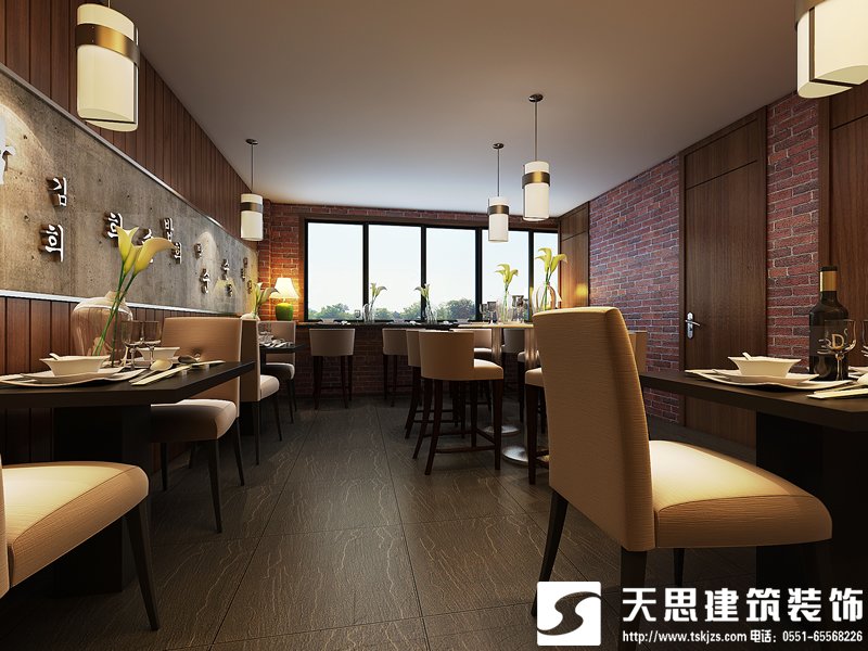 在飯館裝修的時候,我們首先考慮顏色的搭配,不僅僅是墻壁的顏色,包括燈光效果顏色,都會影響顧客的飲食問題。目前根據(jù)相關(guān)專家的研究發(fā)現(xiàn)淺綠色和橙色以及黃色和藍色對于人們飲食具有一些促進效果,尤其是橙色和黃色效果最佳。所以我們在墻壁顏色和燈光效果上面可以考慮這些,具體搭配樣子要看飯館裝修效果圖的感覺。