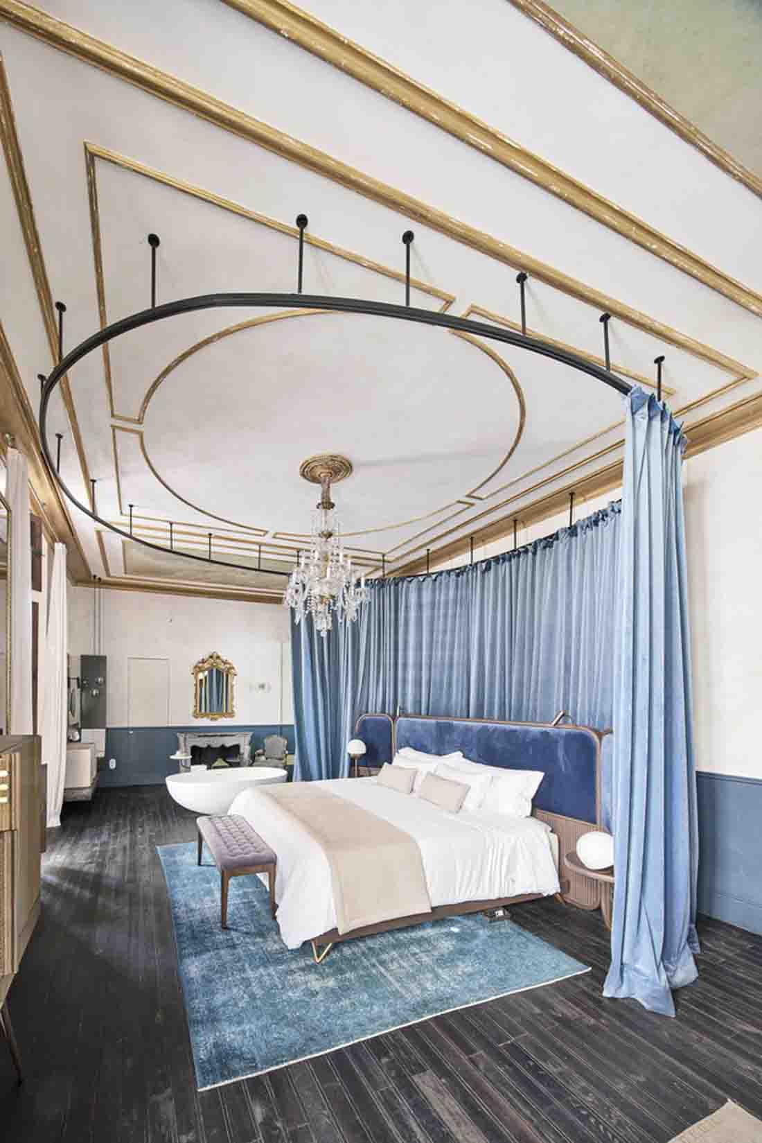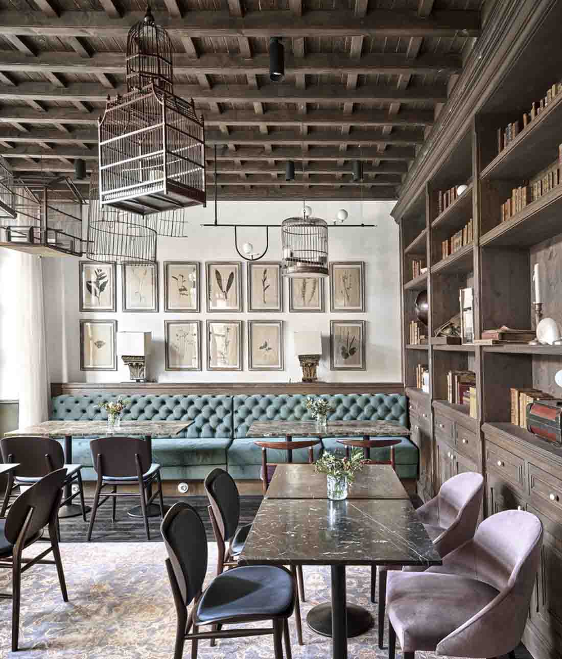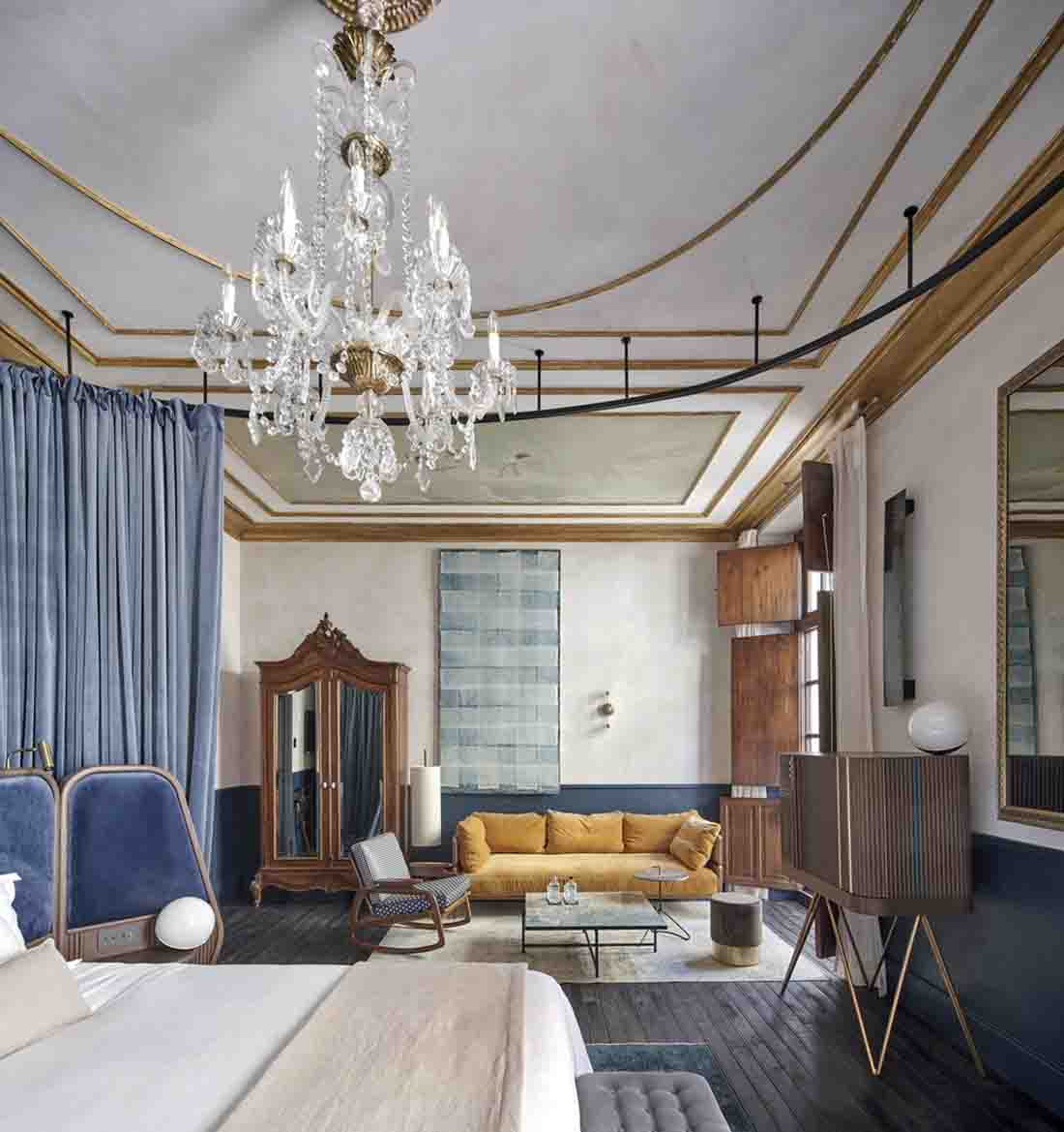 設(shè)計師旨在喚起比酒店更多的參觀房屋的經(jīng)歷。因此,客戶不是在酒店接待處而是在房子的門廳見面;找到的餐廳而不是餐廳,而是找到了居民用餐室,這些房間和客廳就像您在老房子中找到的那樣。該項目精心保留了建筑物中浪漫的氛圍,并與不同時期的干預(yù)和元素進行了有意識的對比。這是對現(xiàn)有百年建筑雜交的尊重,它保留了過去的痕跡,并避免了房屋從未擁有過的輝煌過去的錯誤恢復(fù)。