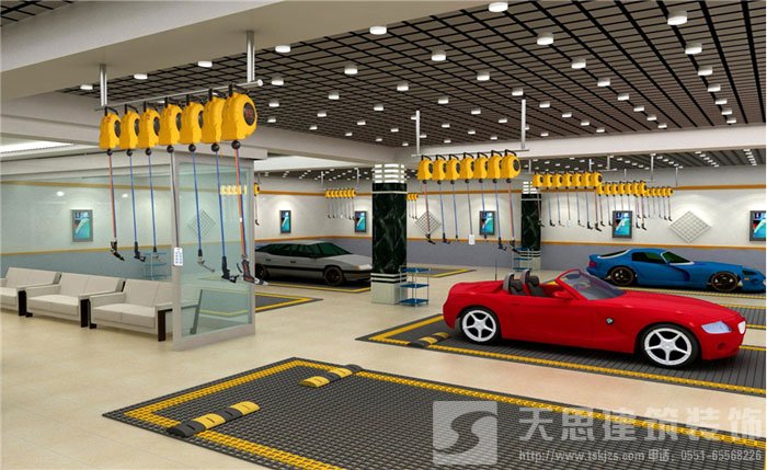 洗車區(qū)是汽修美容店的主要設施,我相信這個去過汽車美容店的都知道吧,汽車美容工作的第一步就是在這個地方完成的。由于汽車產(chǎn)生的污水比較的多,為了保持場所的干凈整潔,應該在洗車區(qū)設置排水通道,將洗車產(chǎn)生的污水排到污水處理器中,當然通過裝修解決了排水問題,但是同時還應該經(jīng)常的沖洗和清掃。我們天思裝飾裝修公司總結了一下汽車美容店裝修的經(jīng)驗,洗車區(qū)的結構大致一般有單道式和通道式兩種,這里就不詳細介紹這兩種結構了。在這里我推薦一種結構,那就是通道式結構,因為這種裝修結構能夠省去倒車的繁瑣,而且還能節(jié)省工作區(qū)域,以此提高工作的效率。