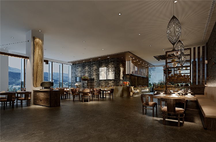 投資方希望打造一個具有民族特色又同時具備國際化背景的星級度假類型的酒店設(shè)計。對傳統(tǒng)文化的有機傳承和再創(chuàng)造是設(shè)計師始終思考的命題。以山、水、鼓、火、圖騰犬五大元素為主線貫穿于室內(nèi)設(shè)計中。