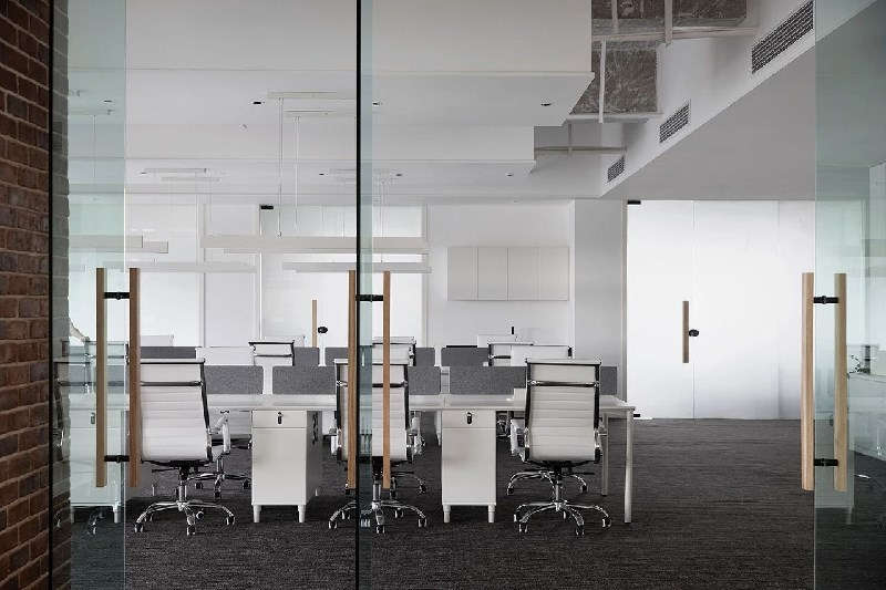 聯(lián)排落地窗滿足了最大程度的采光,玻璃隔斷更強(qiáng)化了室內(nèi)通透,營造高潔、敞亮的良好溝通環(huán)境。其材質(zhì),不僅易打理,還能有效達(dá)到靜音功能,確保工作時的私密性。簡約基底之上,加入現(xiàn)代美式的輕復(fù)古格調(diào),豐富質(zhì)感。在公區(qū)大面積鋪設(shè)地毯,能為辦公時減少更多噪音。適當(dāng)?shù)鼐G植與裝飾元素可以打破事務(wù)所固有的沉寂,從感官切入,化解一直以來人們對其產(chǎn)生的刻板影響。當(dāng)行業(yè)面臨新生血液的迭代更替,思想與審美也將在無形中完成進(jìn)階。