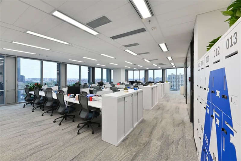 員工區(qū)部份選用了電動(dòng)可調(diào)的升降辦公桌,以滿足員工個(gè)性化的需求,白灰色的家具搭配,混搭淺木色的休閑洽談區(qū)域,地面選用流線款長(zhǎng)版的無膠水鋪裝的地毯相呼應(yīng)。提升了空間品質(zhì)和美感。