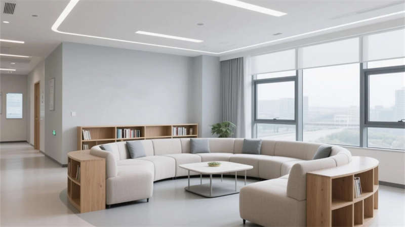該社區(qū)醫(yī)院設(shè)計(jì)以現(xiàn)代簡(jiǎn)約理念為核心,營(yíng)造出溫馨而高效的醫(yī)療環(huán)境。整體空間強(qiáng)調(diào)人性化布局,接待大廳寬敞明亮,弧形接待臺(tái)與自然光結(jié)合,營(yíng)造親切的第一印象。候診區(qū)舒適寧?kù)o,沙發(fā)與書架的點(diǎn)綴減輕等待焦慮,診室則注重隱私與專業(yè)感,柔和色調(diào)提升患者信任。藥房設(shè)計(jì)簡(jiǎn)潔清晰,便于快速取藥,急診室布局高效,確保緊急響應(yīng)流暢?;?yàn)室和影像科突出功能性,無(wú)菌環(huán)境與設(shè)備集成保障精準(zhǔn)診療,康復(fù)區(qū)開(kāi)放通透,綠植與自然光促進(jìn)身心恢復(fù)。所有區(qū)域統(tǒng)一運(yùn)用中性色調(diào)、木質(zhì)元素和流線型家具,強(qiáng)化視覺(jué)連貫性,同時(shí)融入充足采光與綠意,打造舒緩氛圍。設(shè)計(jì)不僅提升醫(yī)療體驗(yàn),還呼應(yīng)了合肥的城市人文特色,為居民提供一處安心、便捷的健康港灣。