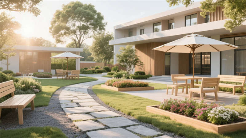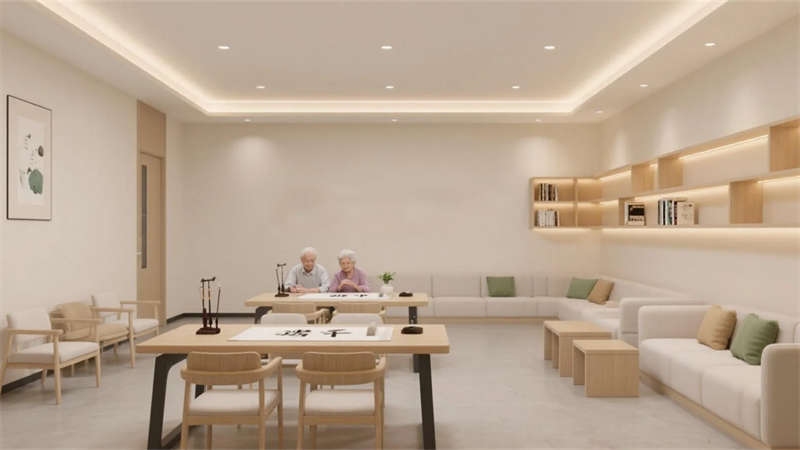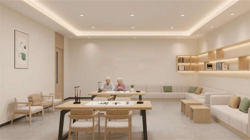 這套老年康養(yǎng)中心設(shè)計(jì)以現(xiàn)代簡(jiǎn)約風(fēng)格為核心,營造一個(gè)溫馨、安全且充滿活力的生活空間。設(shè)計(jì)強(qiáng)調(diào)自然光與柔和色彩的融合,入口大廳以開闊布局和藝術(shù)元素傳遞家的溫暖,休息區(qū)則通過舒適沙發(fā)和綠植打造社交港灣。餐廳和活動(dòng)室注重功能性,淺色調(diào)家具與靈活布局鼓勵(lì)日常互動(dòng),促進(jìn)社區(qū)歸屬感。居住單元采用圓角細(xì)節(jié)和私密氛圍,確保舒適休憩??祻?fù)訓(xùn)練區(qū)融入防滑設(shè)計(jì)和自然光,支持健康活動(dòng)。戶外庭院成為心靈綠洲,石板步道與花壇提供寧靜放松。多功能廳則適應(yīng)多樣需求,增強(qiáng)空間活力。整體設(shè)計(jì)以適老化理念貫穿,避免繁雜裝飾,突出簡(jiǎn)約美學(xué)與人性關(guān)懷,讓每位長者感受到尊重與陪伴,在簡(jiǎn)約中體驗(yàn)生活的美好。