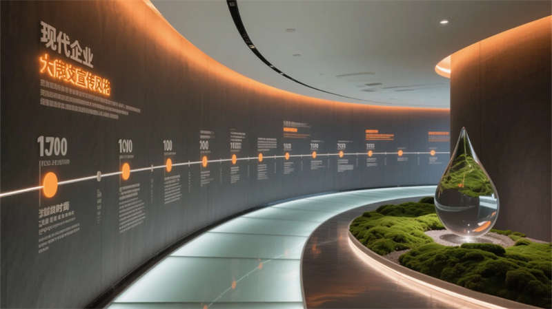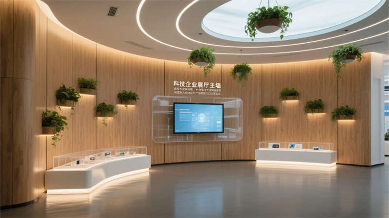 入口以光帶引導(dǎo)與生態(tài)綠墻開啟敘事,核心展區(qū)通過懸浮觸控與嵌入式展臺(tái)聚焦技術(shù)創(chuàng)新。數(shù)字沙盤區(qū)突破物理限制,以天地屏聯(lián)動(dòng)呈現(xiàn)發(fā)展藍(lán)圖;智能會(huì)議艙可隨時(shí)轉(zhuǎn)化為協(xié)作中樞,通透隔斷維持空間對(duì)話性。文化長廊以光影步道承載企業(yè)精神,生態(tài)休憩區(qū)則借自然光影與苔蘚景觀構(gòu)建減壓綠洲。