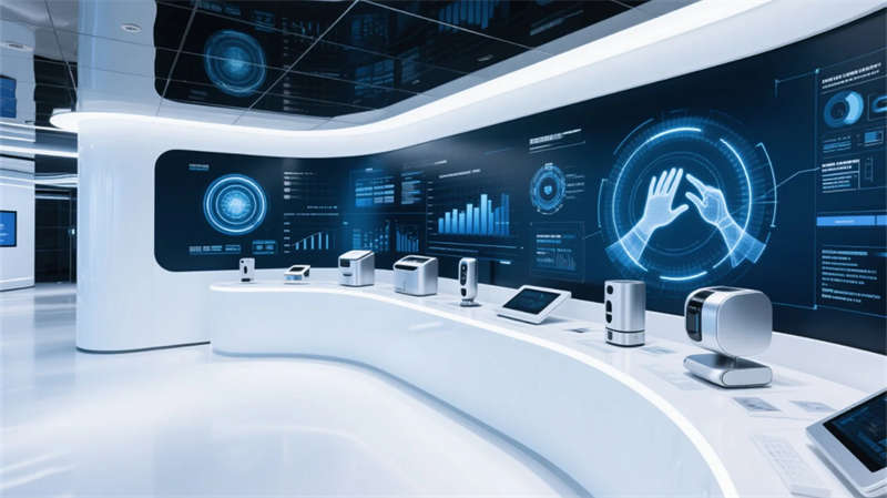 全廳采用模塊化智慧系統(tǒng),互動(dòng)桌面、全息投影與流體藝術(shù)墻實(shí)時(shí)響應(yīng)參觀行為,在展示功能性與人文關(guān)懷間建立精妙平衡。最終的未來暢想?yún)^(qū)以鏡像空間延展視覺維度,在粒子光舞中激發(fā)創(chuàng)新對(duì)話——這里不僅是企業(yè)實(shí)力的窗口,更是合肥創(chuàng)新精神的沉浸式體驗(yàn)場域。