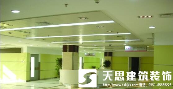 病房——橡膠地板。衛(wèi)生間、開水間、消防梯及通道——地磚。門診樓、行政辦公、科教室——防滑地磚??蒲?、檢驗(yàn)——防靜電地板、防腐蝕地磚。天花,除門診大廳、電梯廳、過廳等公共空間外,可采用半隱式輕鋼龍骨防水石膏板吊頂。墻面——殺菌彩色乳膠漆。
